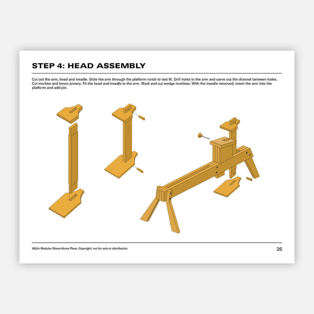 Downloadable PDF plans for a fully modular shave horse system. Includes detailed dimensions, complete cut lists, and step-by-step instructions for building the standard shave horse, the mule ear attachment, and the bowl makers horse. Clear diagrams and straightforward guidance make these plans easy to follow from start to finish. Available for immediate download after purchase.