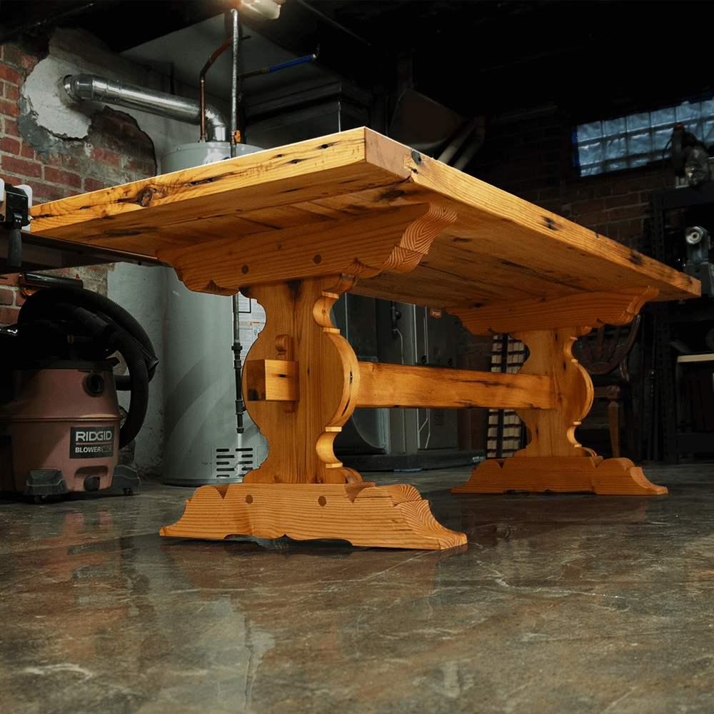 This trestle-style dining table is designed for strength, simplicity, and timeless appeal. Drawing from centuries-old construction methods, this design utilizes robust sliding dovetails and mortise and tenon joinery, resulting in a rock-solid structure built to last generations.